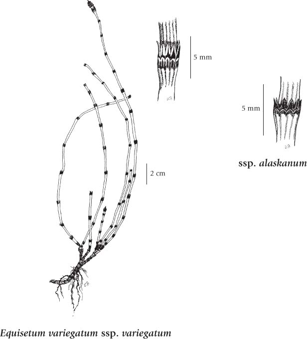 E.scirpoides (Dwarf Scouring-rush), is simmilar but has no central cavity, and only 3-4 teeth on the stem sheaths.